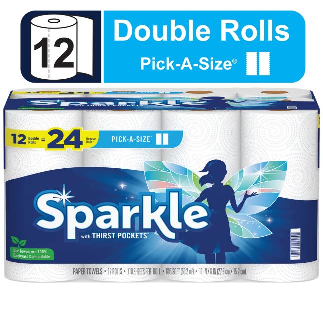 • Each pack contains 12 Double Rolls of white Sparkle® Pick-A-Size® paper towels